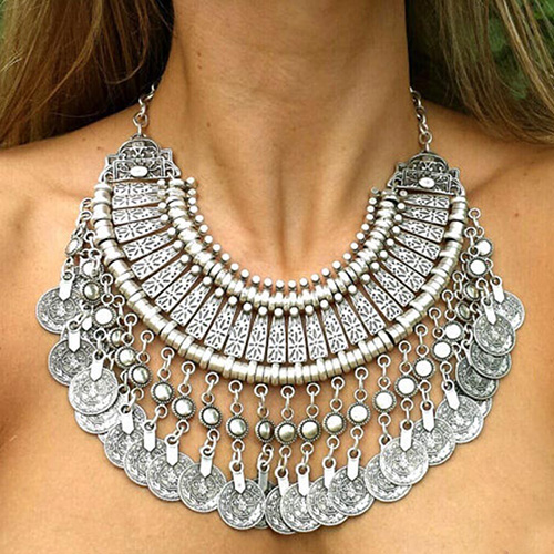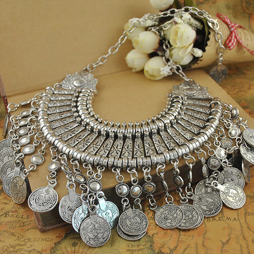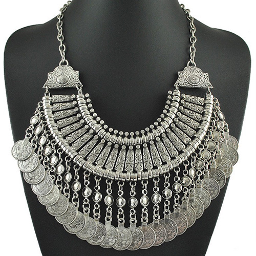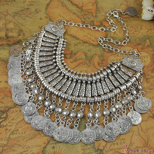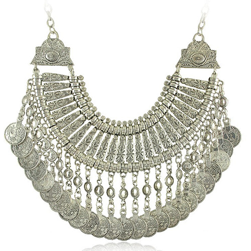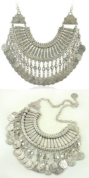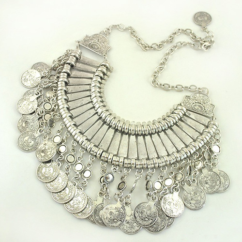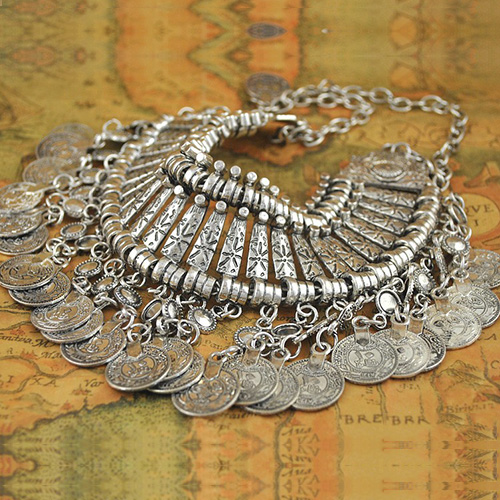 Make a serious splash with this gorgeous necklace! Retro style,with carved copper coins