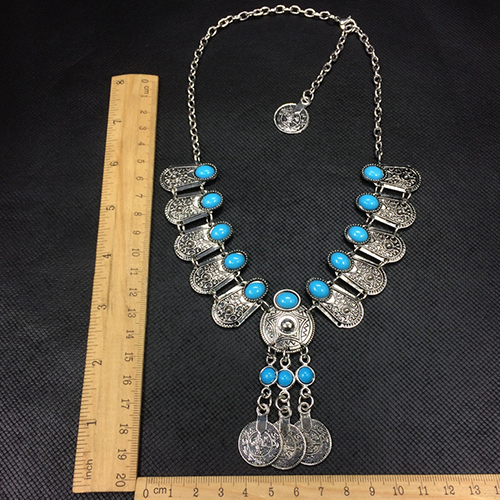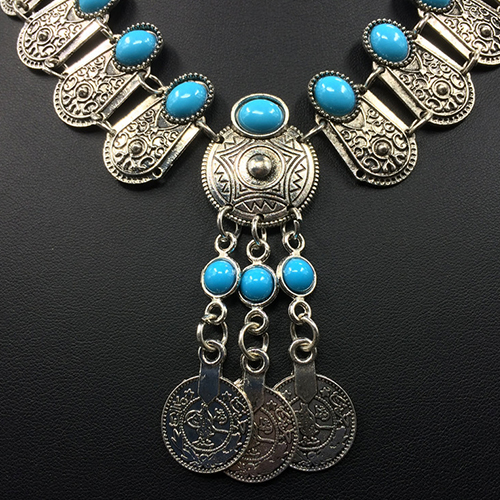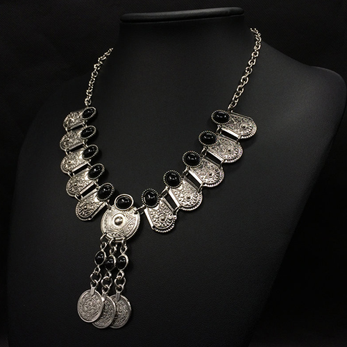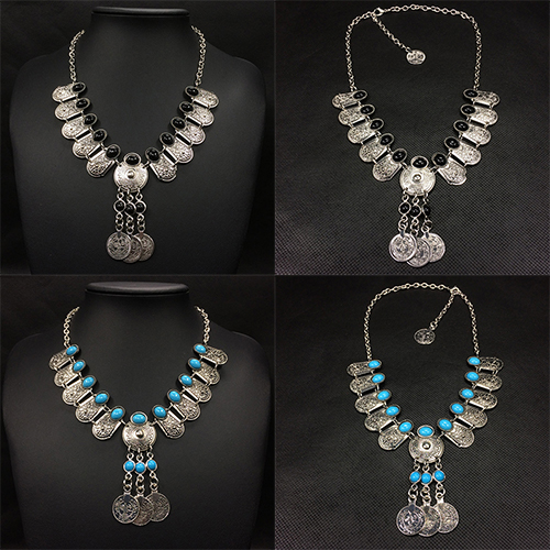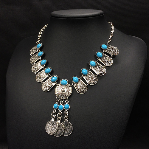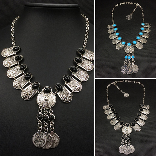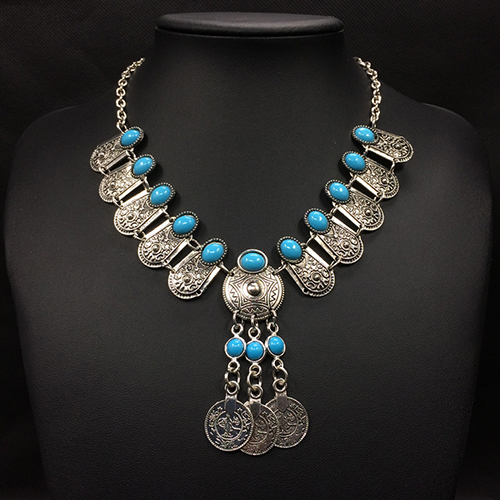 Retro Ethnic Style Gem-inlayed Coin Pendant Necklace