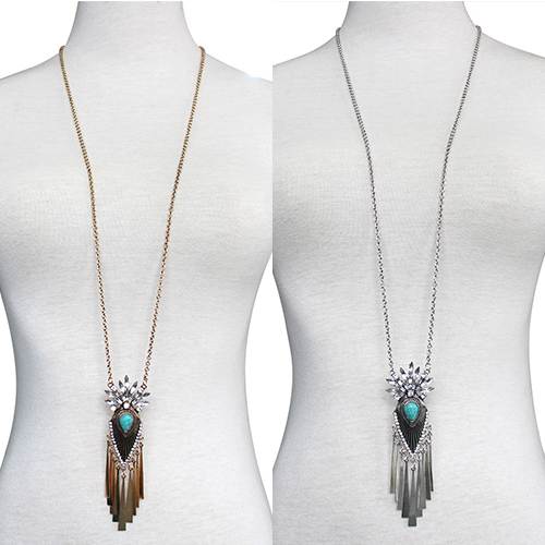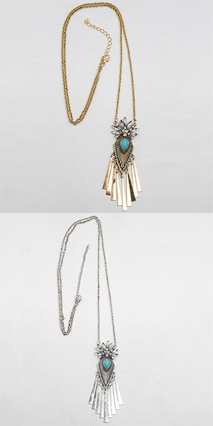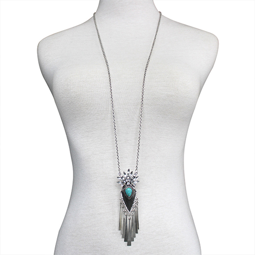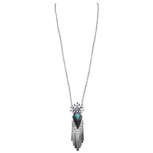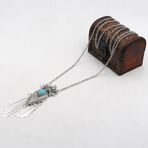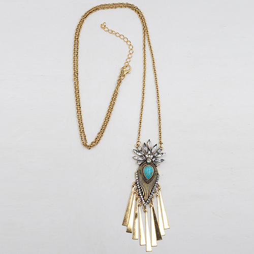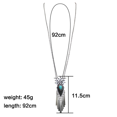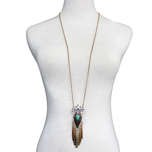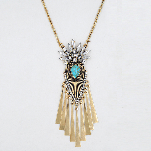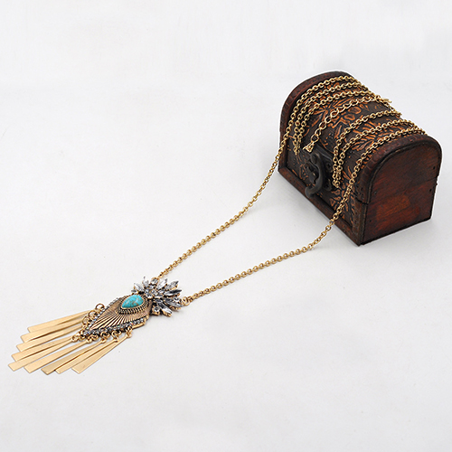 Retro Ethnic Style Rhinestone Tassel Pendant Necklace