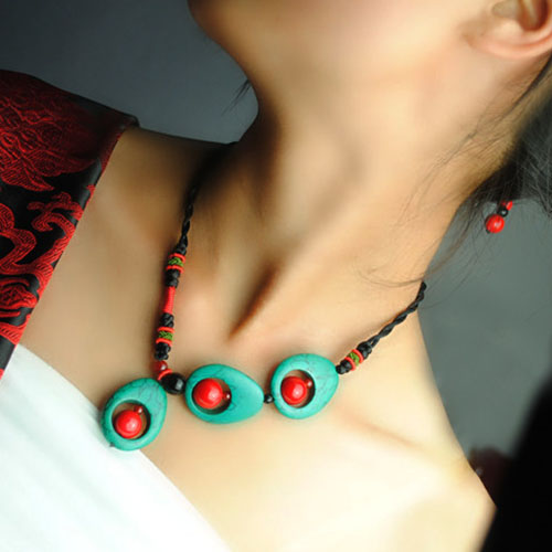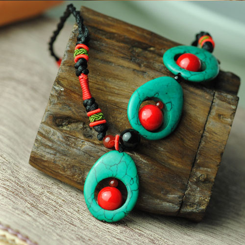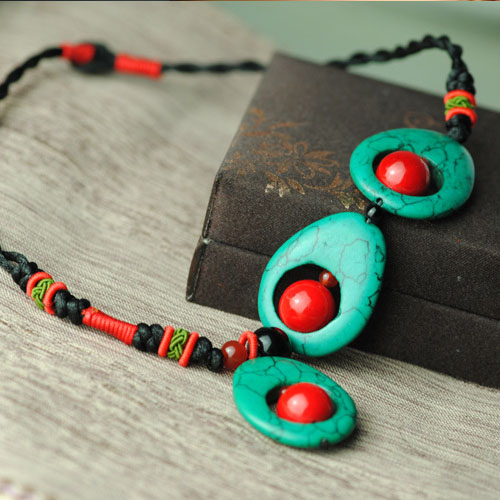 Retro Ethnic Style Turquoise Pendant Braided Necklace