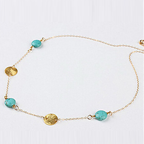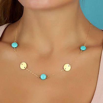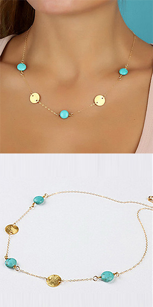 The faux stone and disc mixed necklace is a great addition to any outfit,