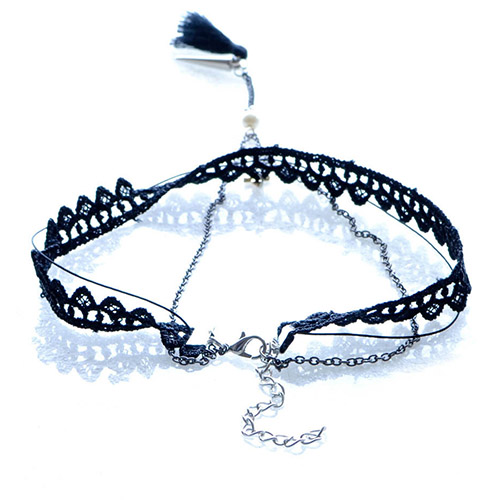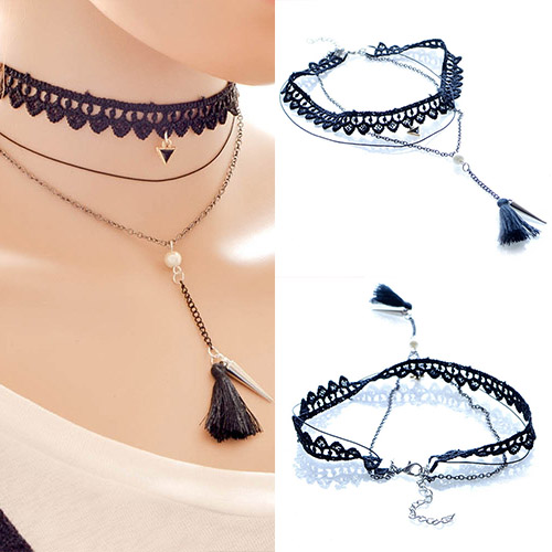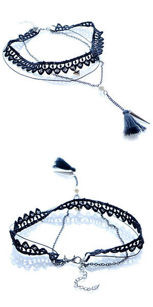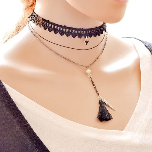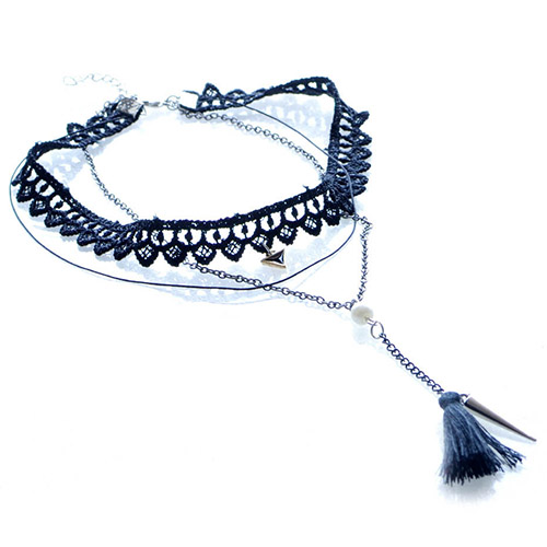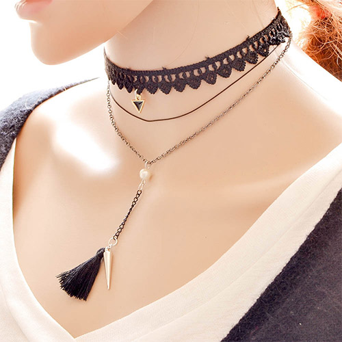 is its multilayer pendant. The necklace is outfitted with pearl tassel lace design, romantic