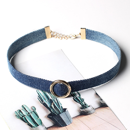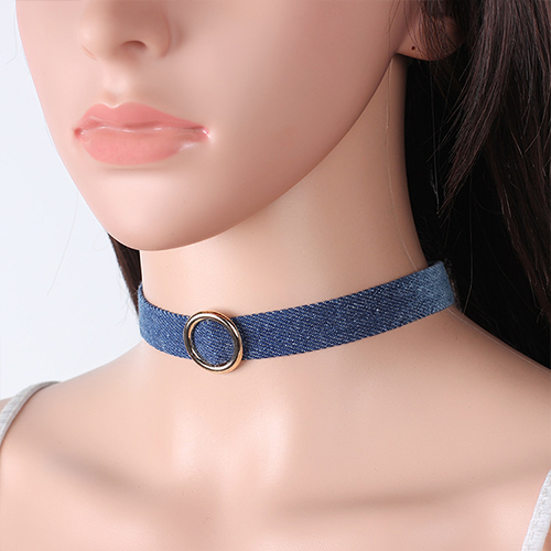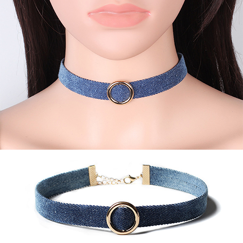 Achieve an instant charming look when you put on denim choker. This denim choker is decorated with an