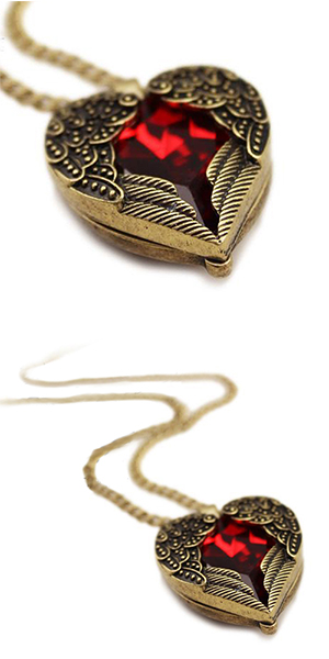 Retro Style Angel Wings Heart Shaped Pendant Necklace