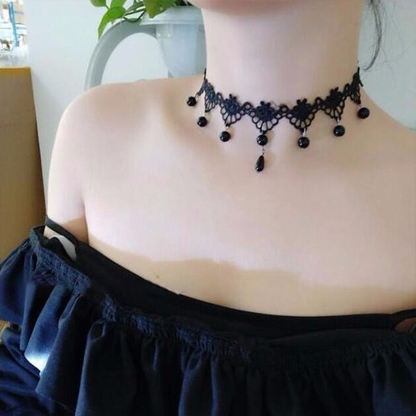 Looks so charming and dazzling with this lace choker. Plus,its beaded tassel design