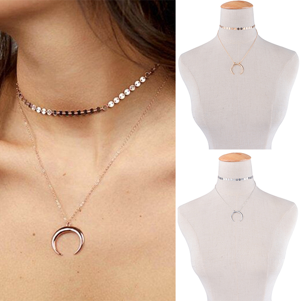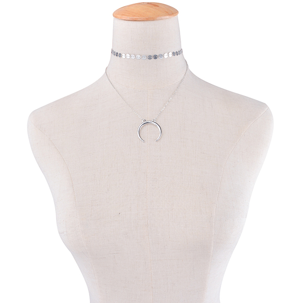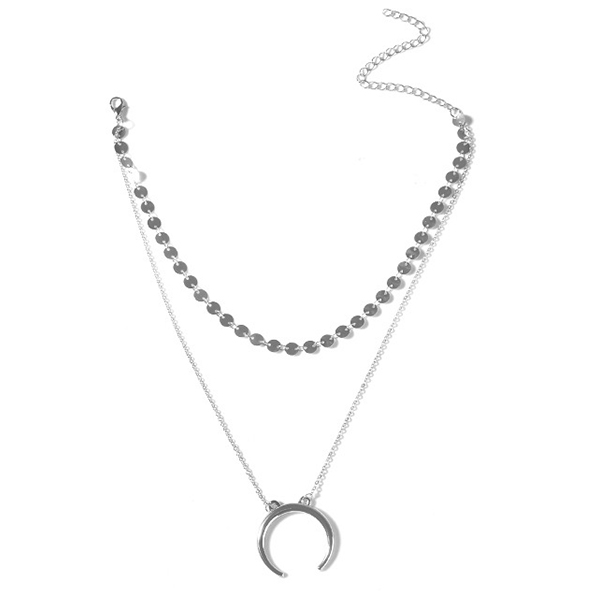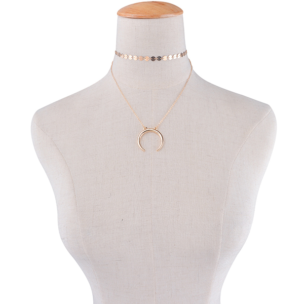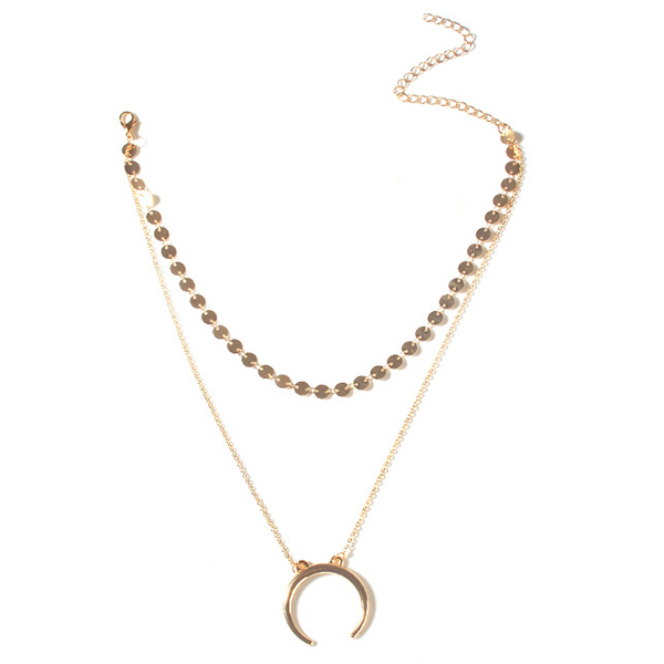 Retro Style C-shaped Pendant Double Layer Alloy Necklace
