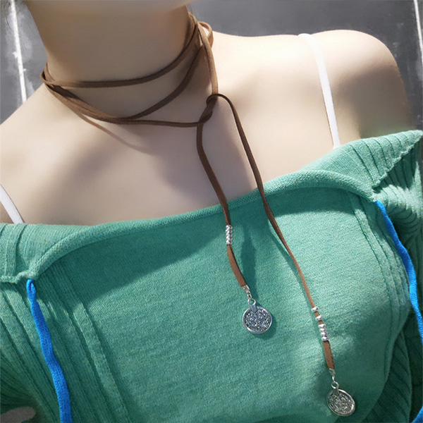 Wow,such a chic and unique necklace. It is finished with copper coin pendant,retro yet stylish. The most attractive design?