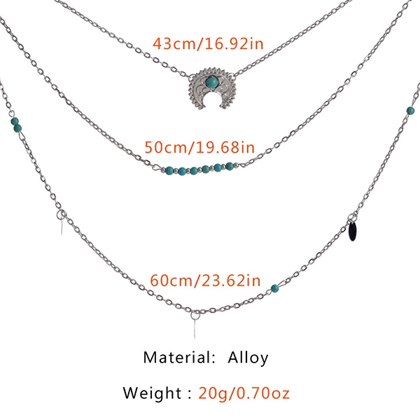 Retro Style Crescent Pendant Multi-layer Necklace
