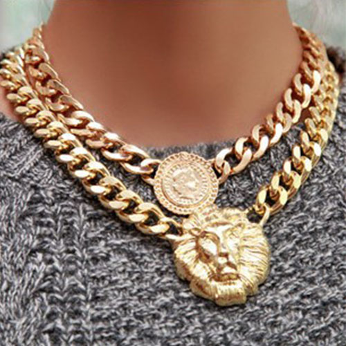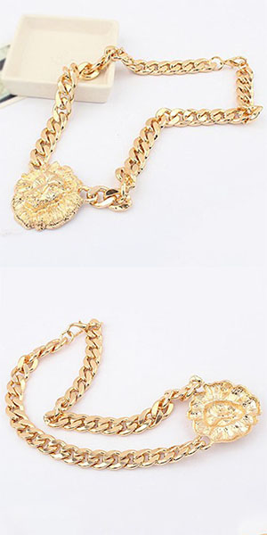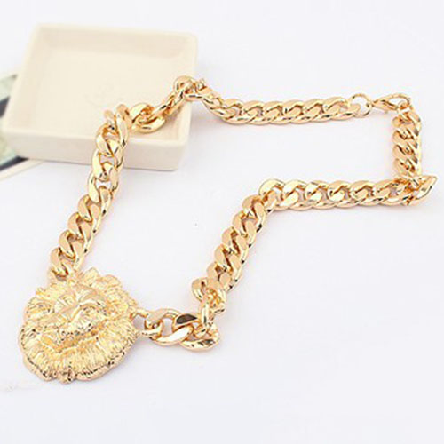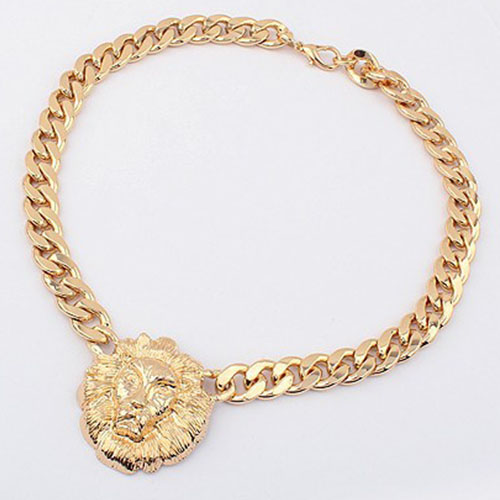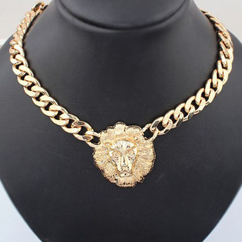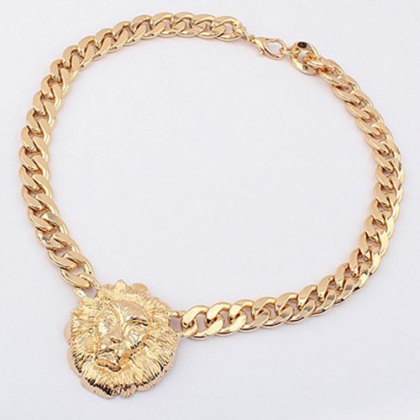 Retro Style Gold-tone Lionhead Pendant Necklace
