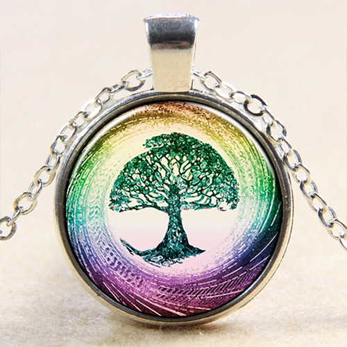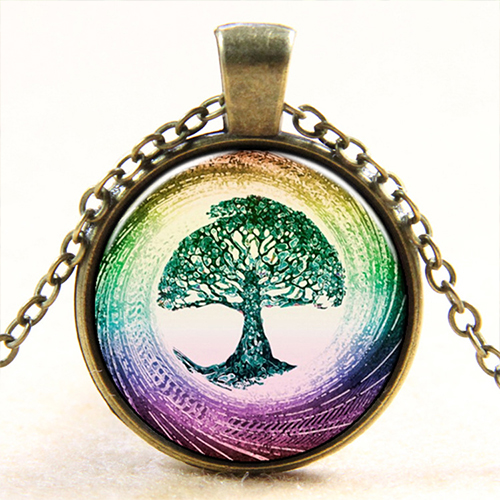 This necklace features a time gemstone pendant,with life tree pattern makes it look