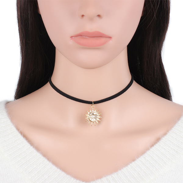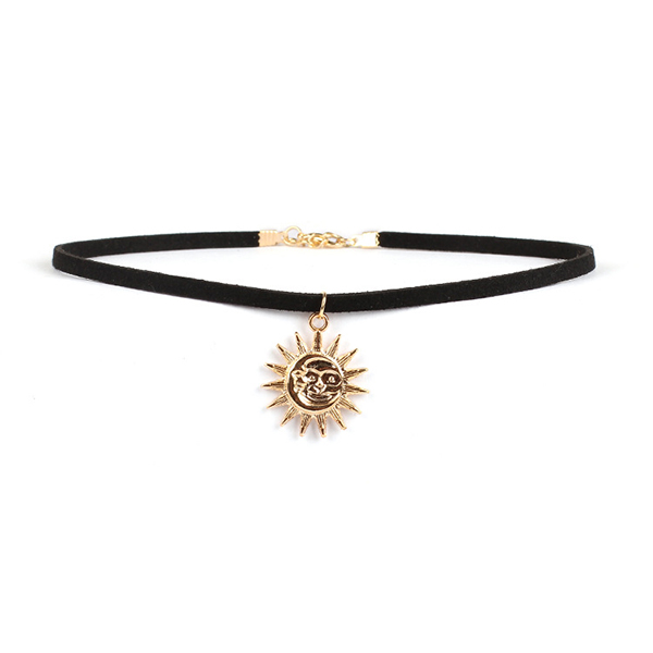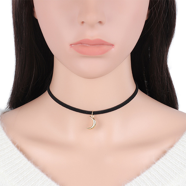 Create a captivating look with this choker necklace. PU leather choker with a moonpendant,simple but stylish. Ready to greet their cheers once you wear this necklace.