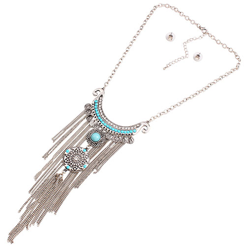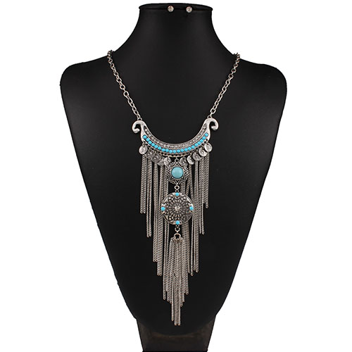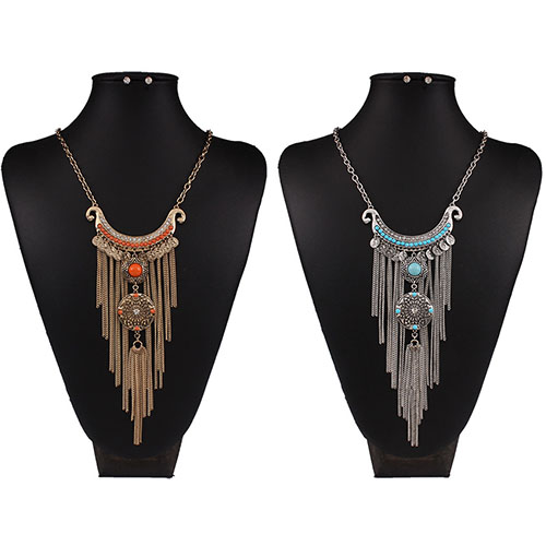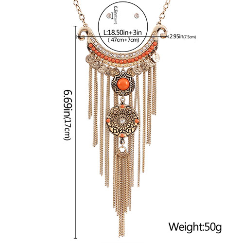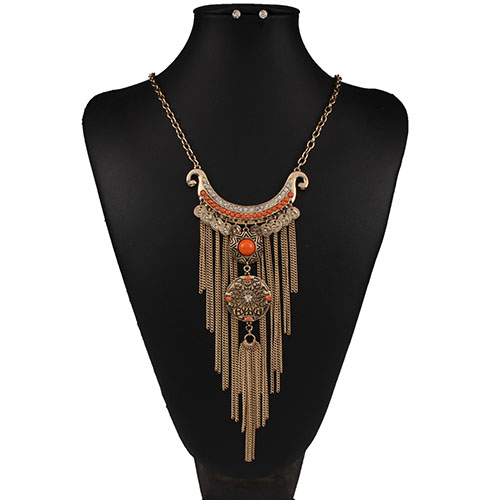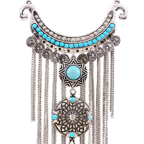 Retro Style Rhinestone Carving Tassel Pendant Necklace