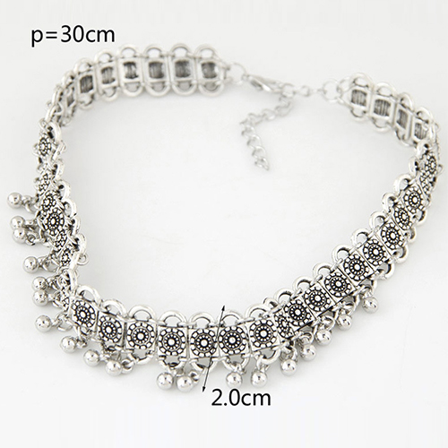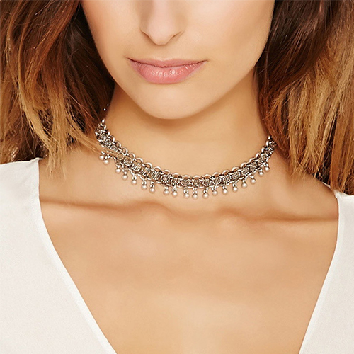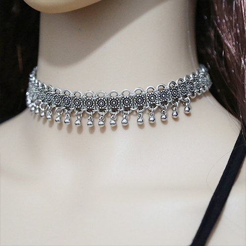 choker would be your good choice. Its engraving details and small bells design makes it look retro yet stylish. Highlight your charming neck with this choker.