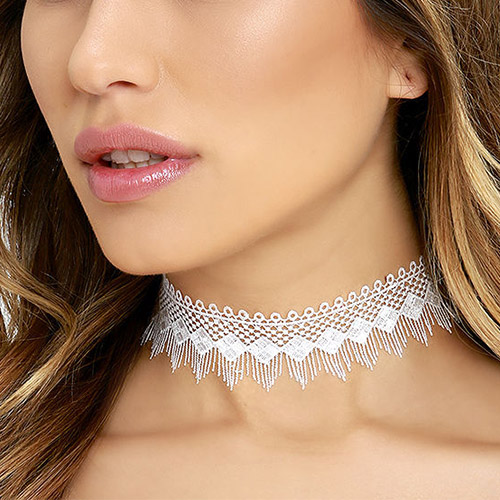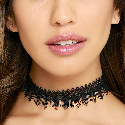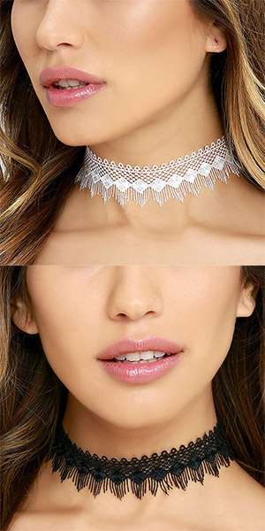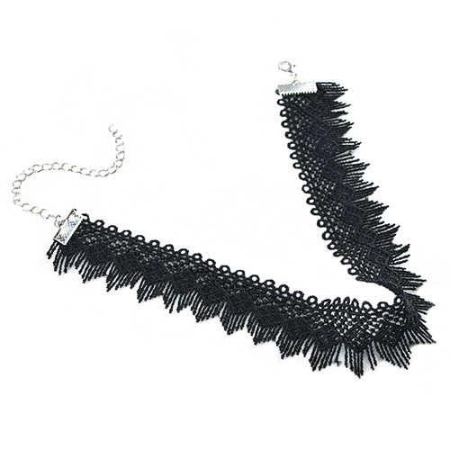 This choker necklace is crafted from lace fabric and it is equipped with an alloy extended