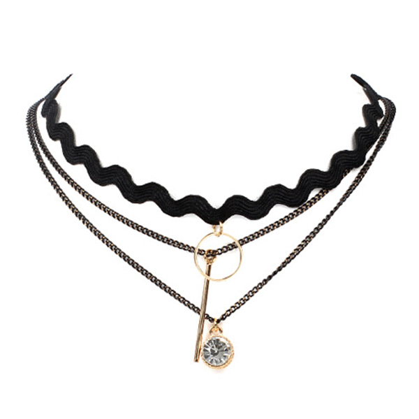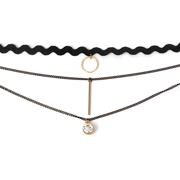 Simple Style Rhinestone Pendant Multi-layer Lace Choker Necklace