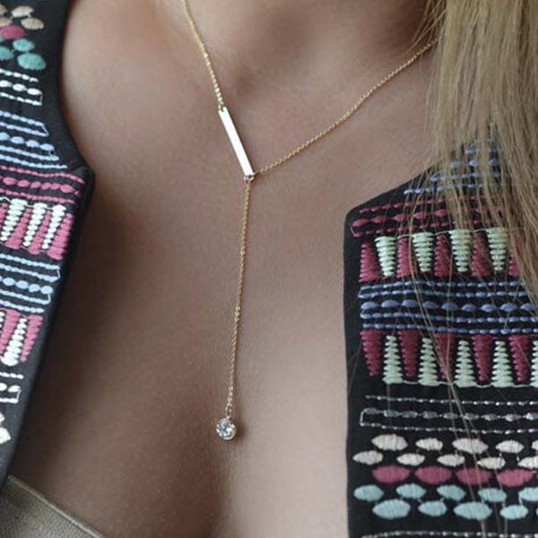 Simple Style Rhinestone Tassel Pendant Necklace