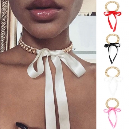 Sweet Style Lace-up Bow-knot Alloy Choker Necklace
