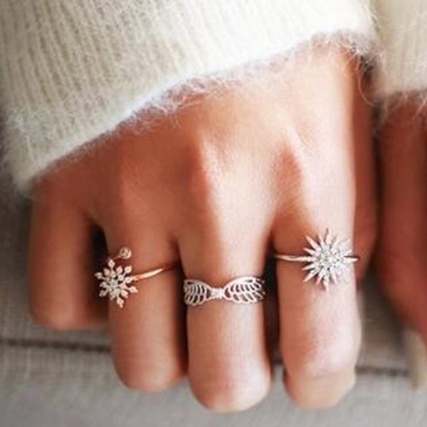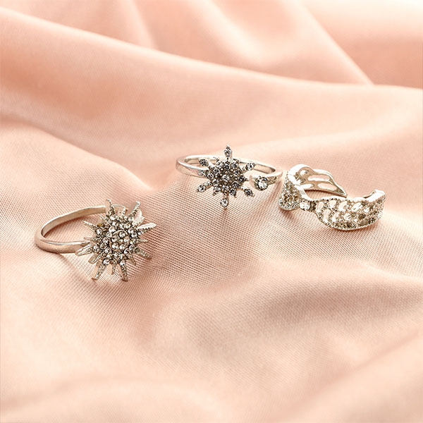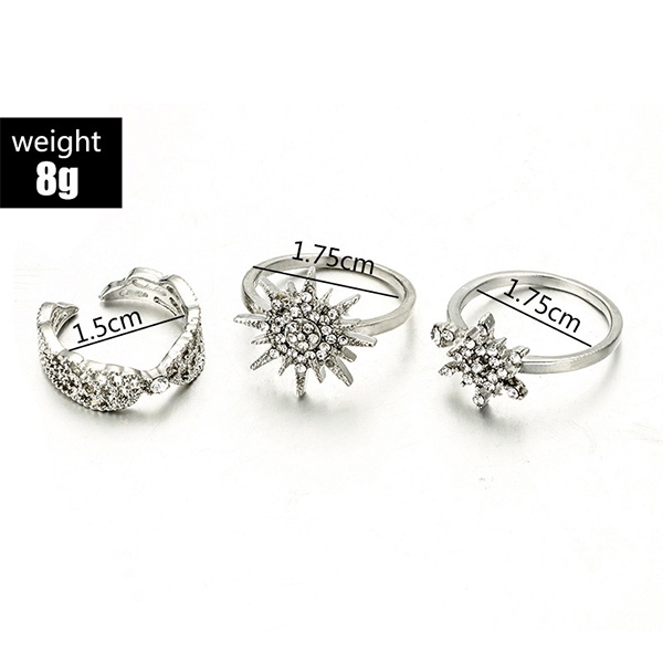 slender fingers. It consists of 3 pieces rings,the rhinestone details will further enhance its charm.