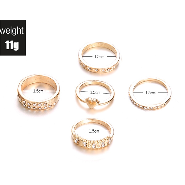 including 5 pieces different rings,the rhinestone inlaid details will make it look more sparkle.