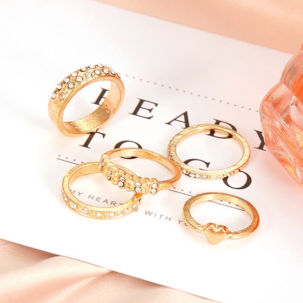 Fashion Rhinestone Inlaid Alloy Ring Set 5 pcs/Set
