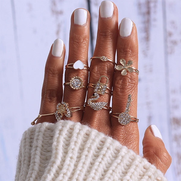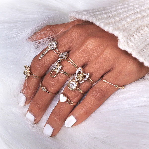 Including 9 pieces different rings,this ring set can enrich your overall look.