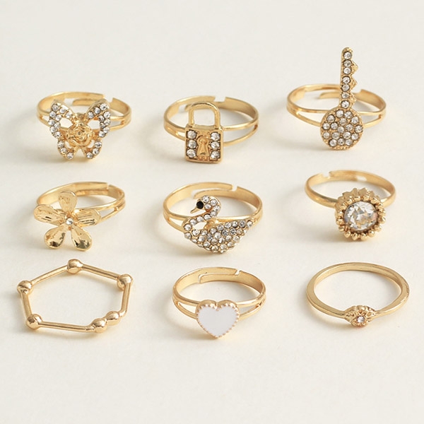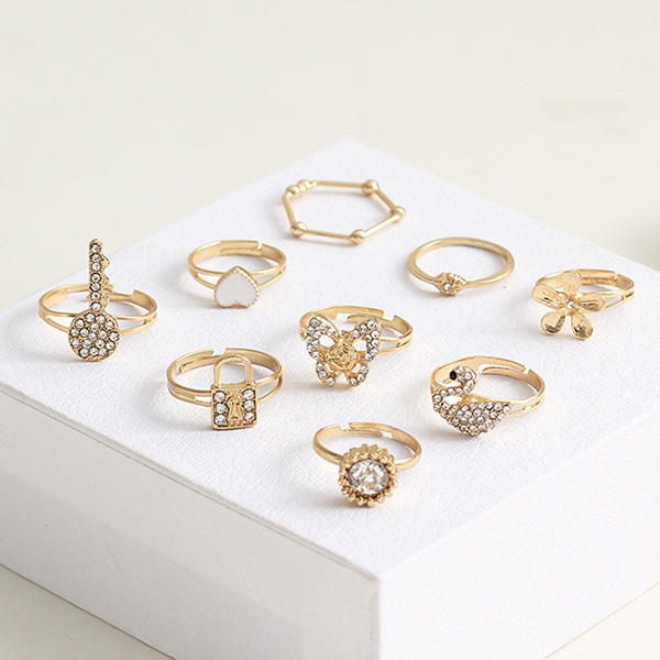 Fashion Rhinestone Inlaid Alloy Ring Set 9 pcs/Set