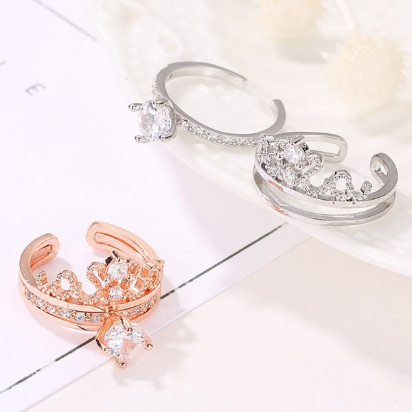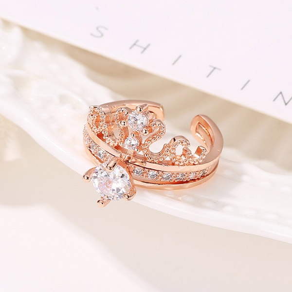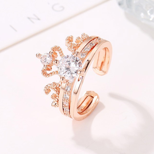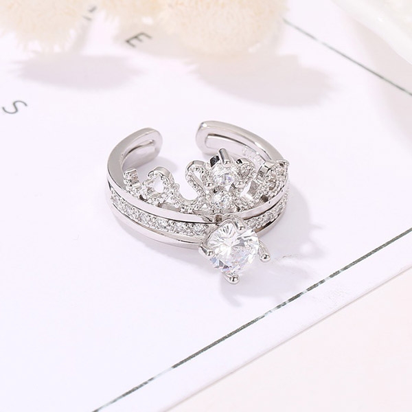 Fashion Rhinestone Inlaid Crown-shaped Open Ring