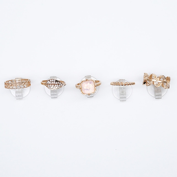 Fashion Rhinestone Inlaid Leaf Shaped Ring Set 5 pcs/Set