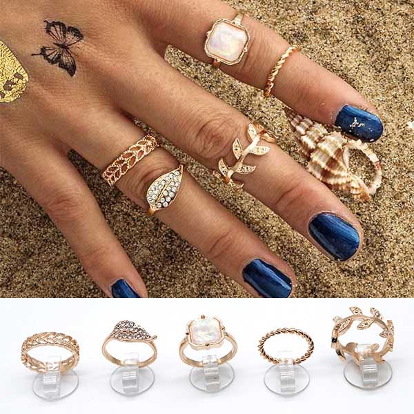 This ring set comes with a classic yet stylish gold tone,including 5 pieces different rings,which not only can