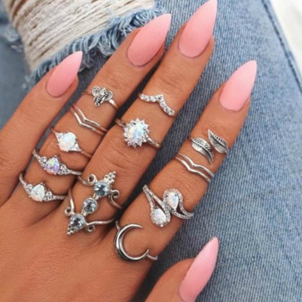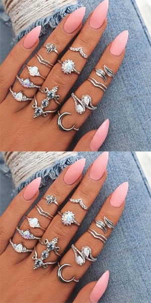 It is a good way to embellish your charming and slender fingers with this ring set. It consists of 12 pieces