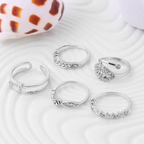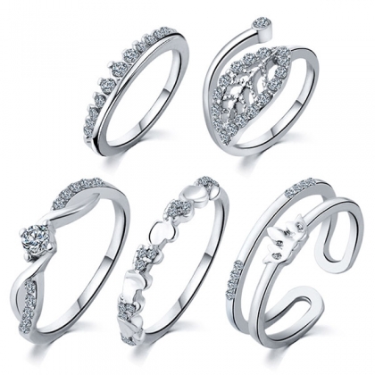 Fashion Rhinestone Inlaid Ring Set 5 pcs/Set