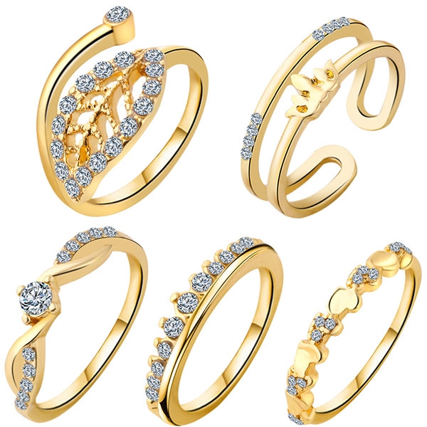 Including 5 pieces different rings,this ring set has two classic colors for your optional:gold color and silver color.