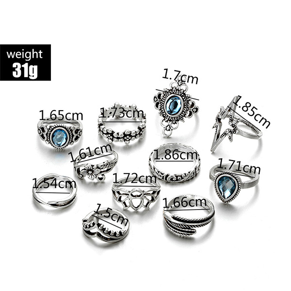 Fashion Silver-tone Gem Inlaid Alloy Ring Set 11 pcs/Set