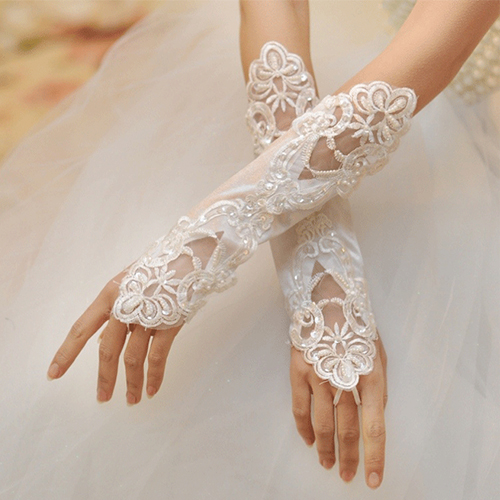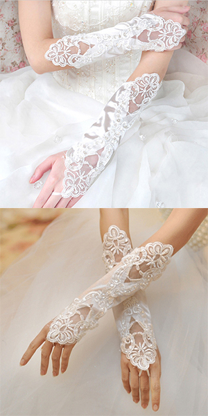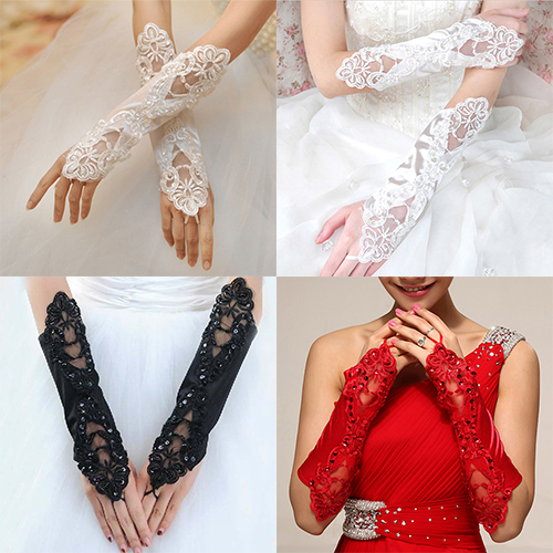 wedding gloves accompany you. Lace spliced style,with fingerless design,chic