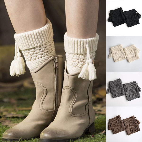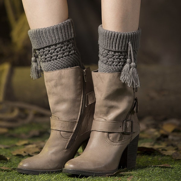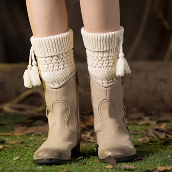 Fashion Solid Color Tassel Spliced Knit Leg Warmers