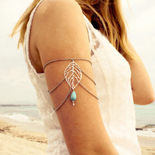 Fashion Hollow Out Leaf Water-drop Turquoise Tassels Arm Chain