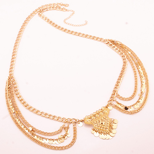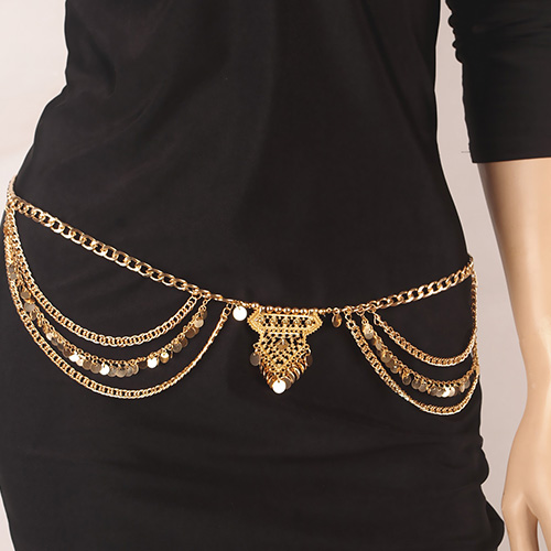 Designed with a hollow out carving pendant,this tassel waist chain can give you
