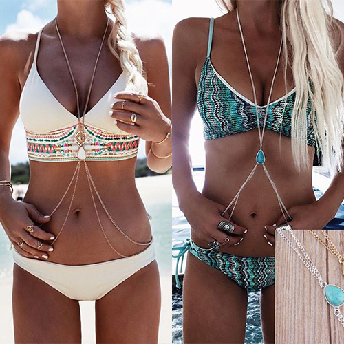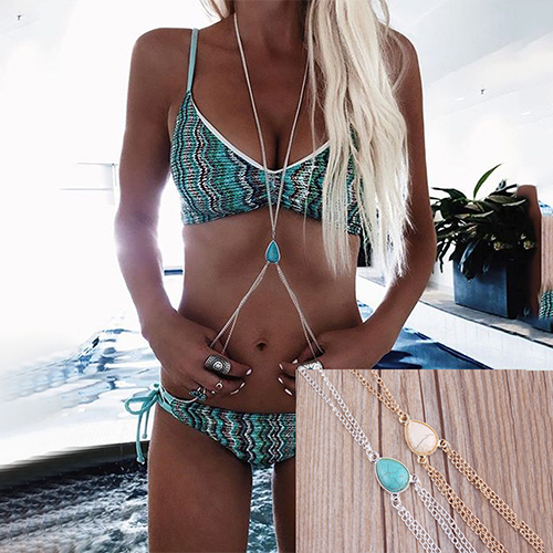 The body chain is a perfect addition to make you more charming and sexy. It is decorated with turquoise