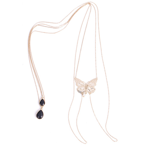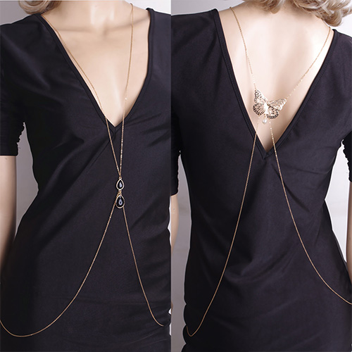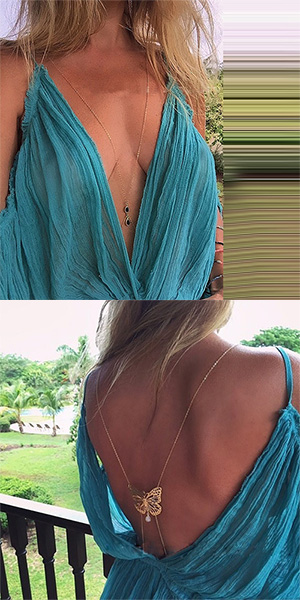 prominent. And the gold butterfly like your wings and emphasize your sexy back. Pairing it