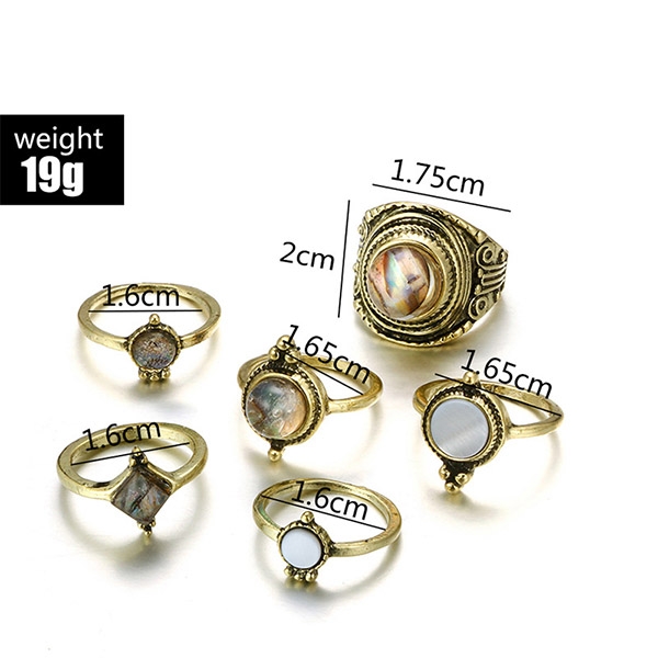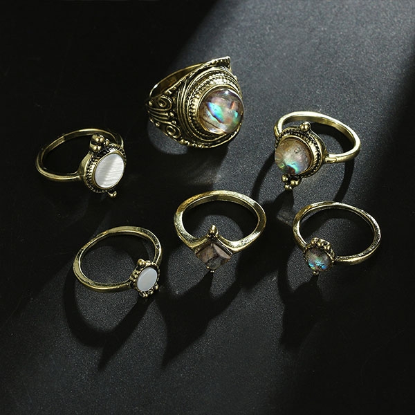 Retro Rhinestone Inlaid Alloy Ring Set 6 pcs/Set