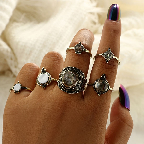 It is a cool way to embellish your charming and slender fingers with this ring set. It consists of 6 pieces
