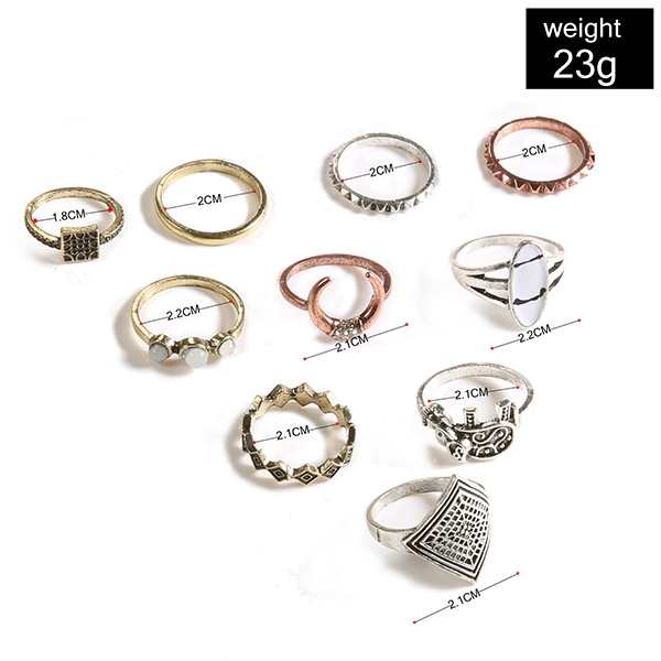 Including 10 pieces different rings,this ring set also can lend you a dash of chic and stylish
