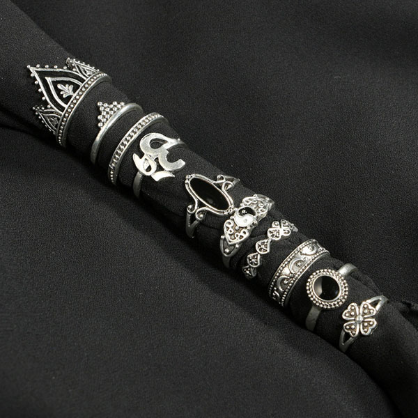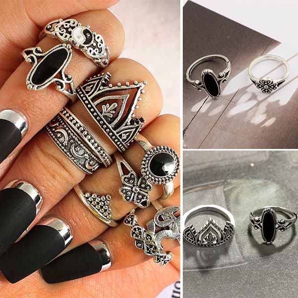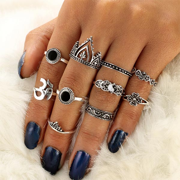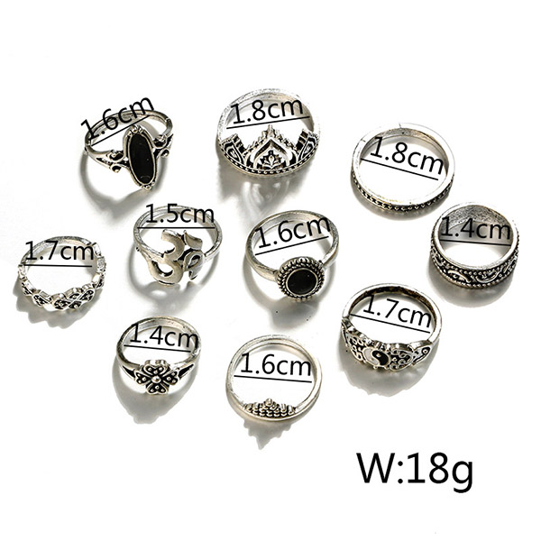 You can embellish your charming and slender fingers with this alloy ring set. Including 10 pieces different