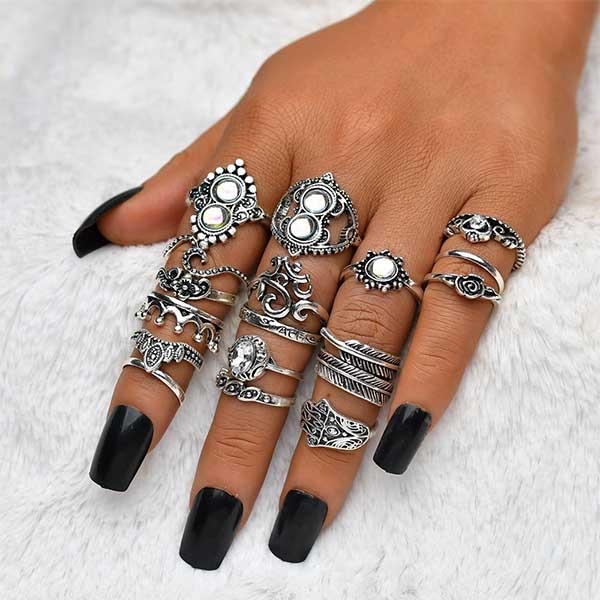 Like retro style rings? Then make your eyes focused on this ring set. It comes with a classic yet retro silver tone,