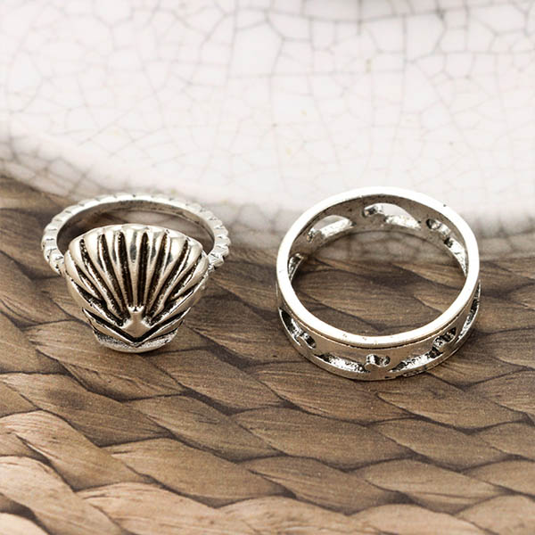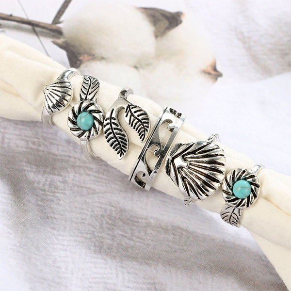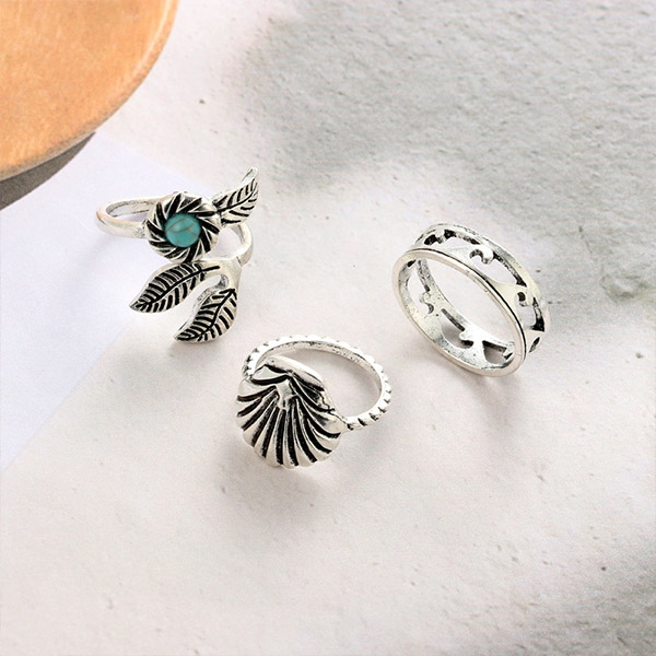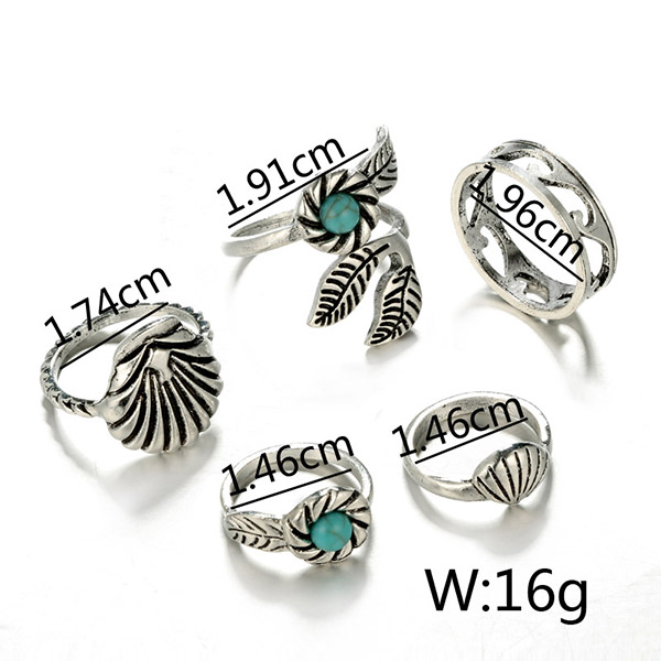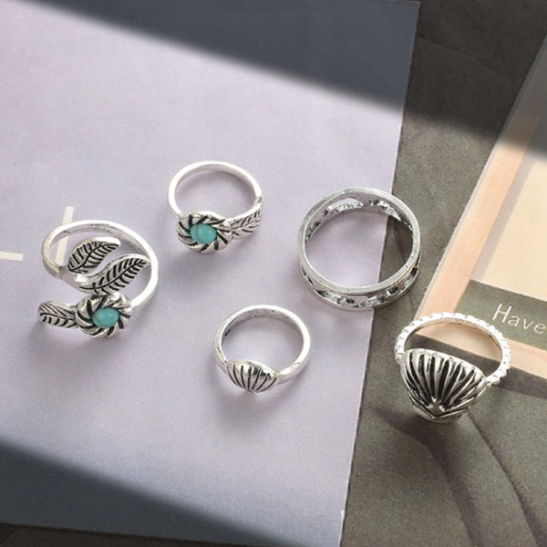 This ring set features a classic silver tone,including 5 pieces different shaped rings,which not only
