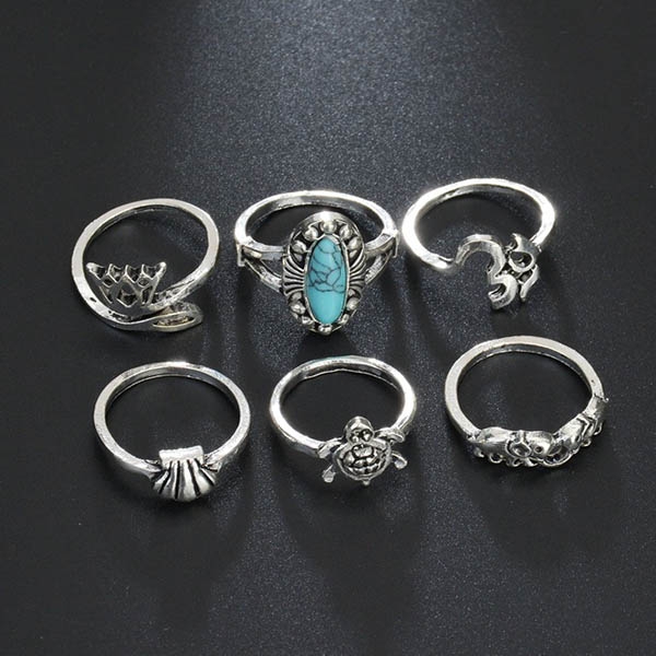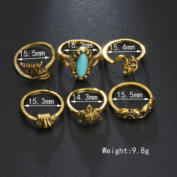 Retro Style Crown Turtle Shaped Ring Set 6 pcs/Set