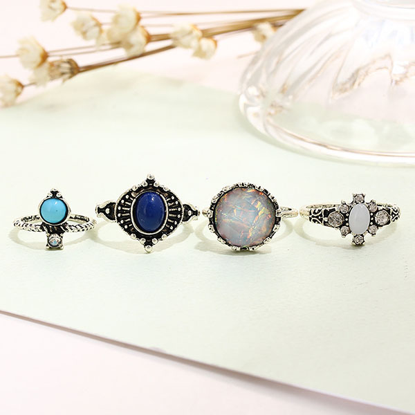 Retro Style Gem Inlaid Ring Set 4 pcs/Set
