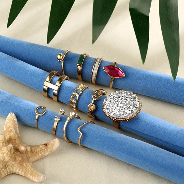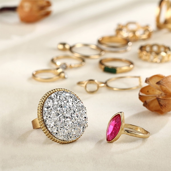 different rings,coming with a classic yet stylish gold tone,this ring set is sure to lend you a dash of chic and stylish vibes.