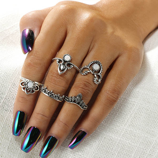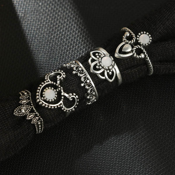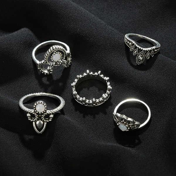 This ring set features a classic and retro silver tone,including 5 pieces different shaped rings,which of course
