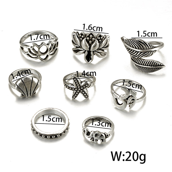 Retro Style Hollow Out Carved Alloy Ring Set 8 pcs/Set